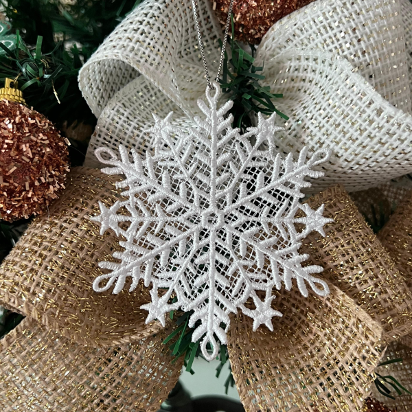 “FSL Snowflake - Use at least 2 layers of Solvy Backings/stabilizers. - For the 3D version, place 2mm craft foam AFTER the stop(grid sew).”