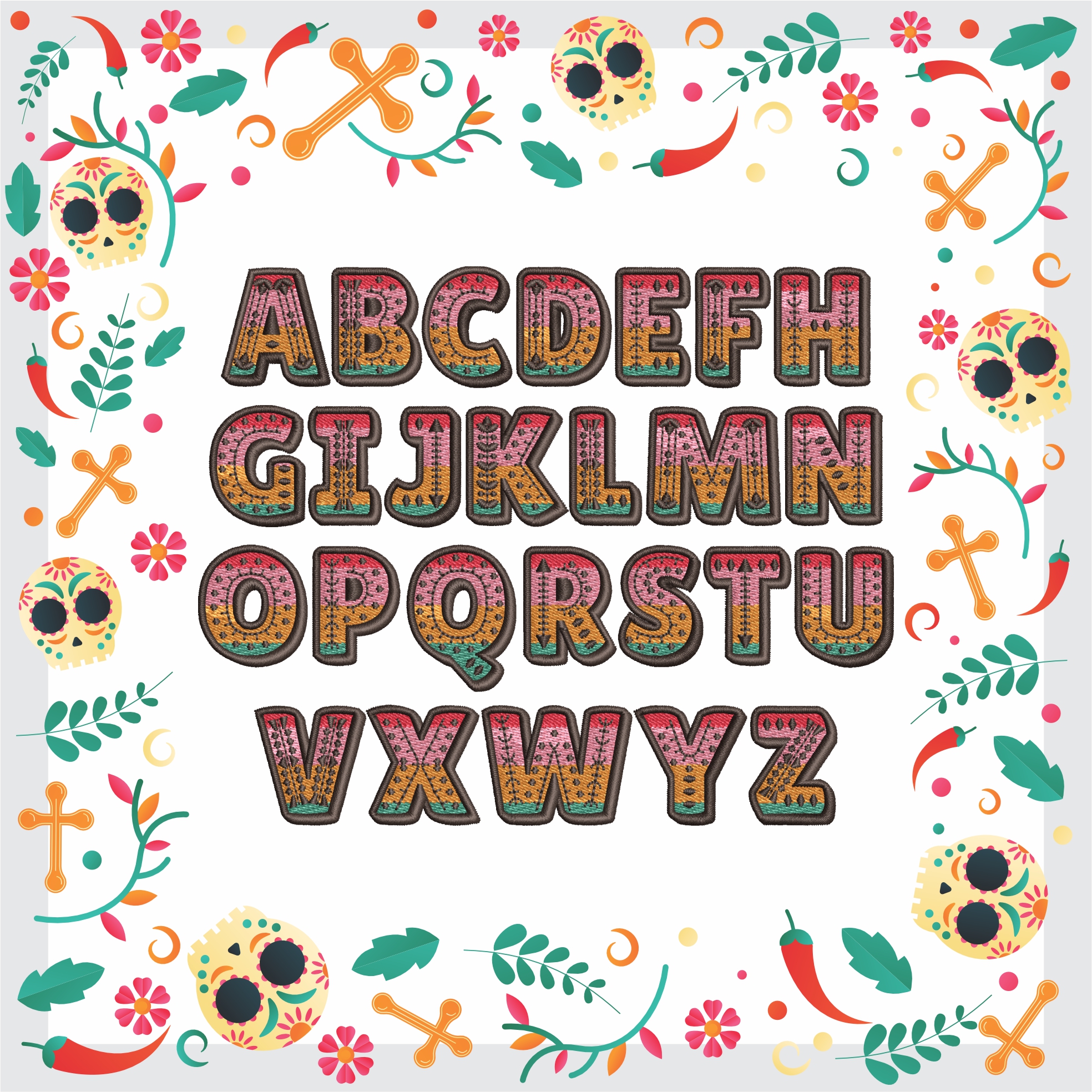Ready to sew Dia de Los Muertos FontWorks for Flats and Hats!
